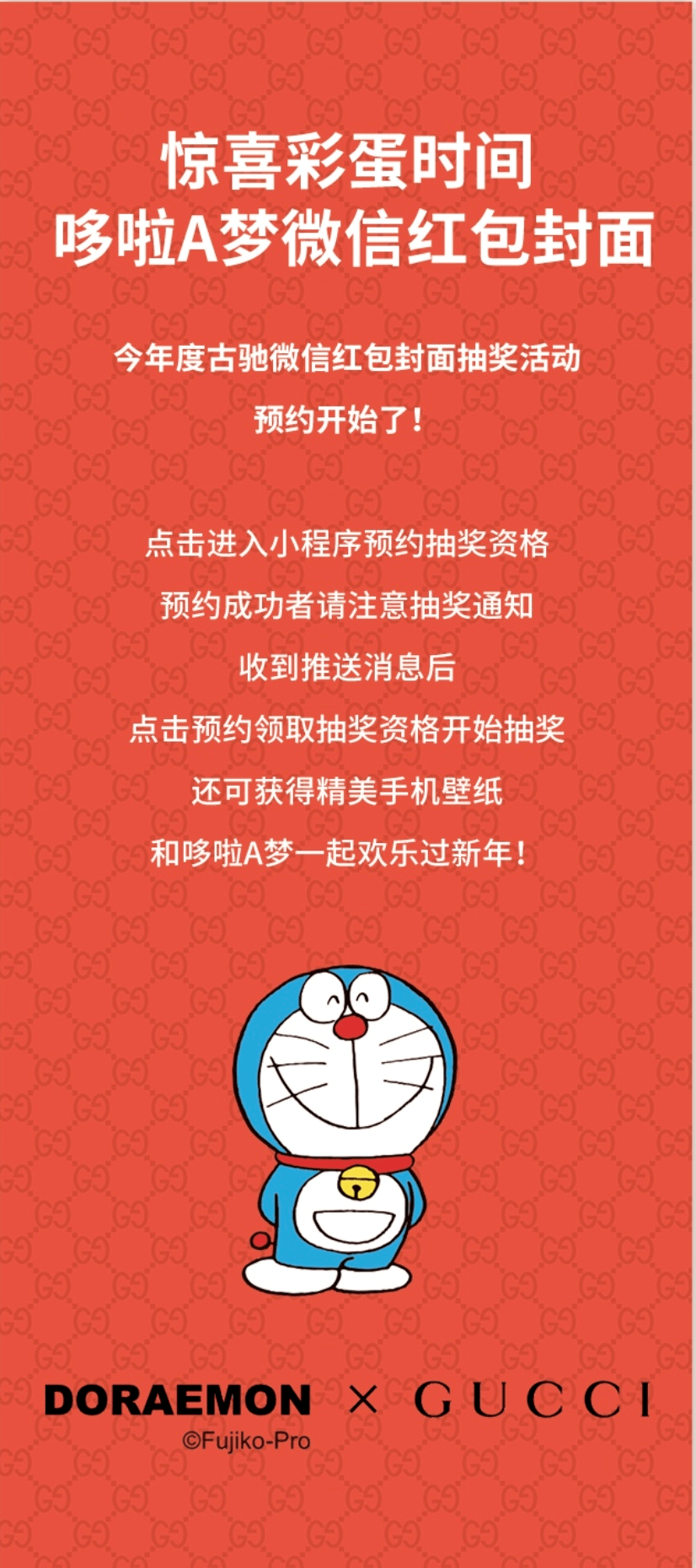 今年,微信红包封面的第一波热潮由Gucci和哆啦A梦联名款限量红包封面掀起。1月15日,2021Gucci牛年限定红包封面正式上线,这款红包封面是免费发放,可以“无限次”抽取,但需要用户先注册小程序会员,再通过邀请好友助力的方式来获得更多的抽取机会。