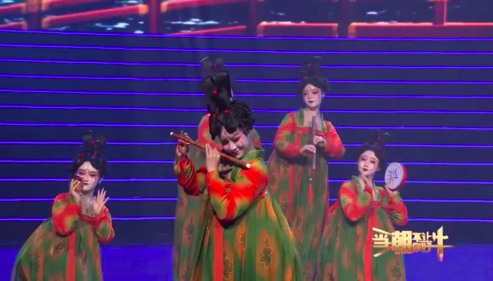 吹笛子的独舞 《唐宫夜宴》剧照 图自河南卫视公众号视频发布截屏