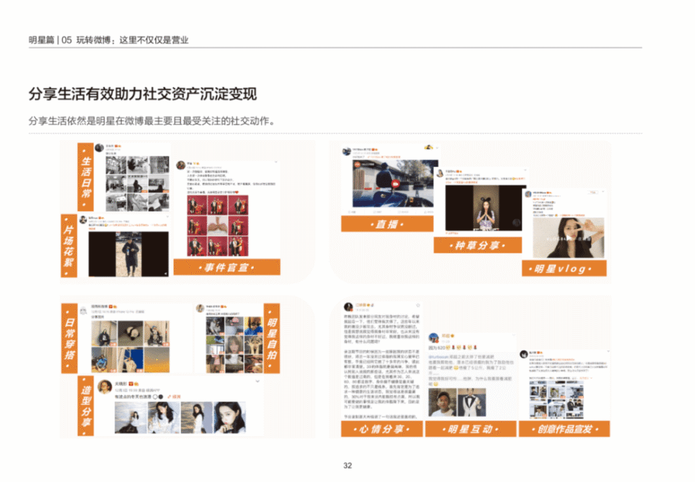 总体而言,基于明星作品、生活内容引爆的破圈影响,粉丝及大量娱乐化PGC/UGC的互动与传播,明星内容通过社交裂变,形成巨大的热点效应,高效助力明星商业价值提升。