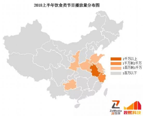 2018上半年,泽传媒监测的全类别综艺中,饮食类节目共有9档,除安徽卫视播出3档外,浙江、陕西、河南、山东、江苏、贵州卫视均只播出1档。