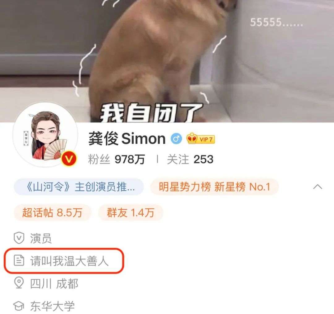而到了《山河令》,主演们更是配合着剧情,找到了有趣、易产生好感,又能够变成梗的宣传方式。张哲瀚的微博简介写着“裸辞事业编首领”,网友惊呼是那个豁了命也要离开天窗的周子舒了;而龚俊的简介则写着“请叫我温大善人”,一句话就带出了温客行妖孽、腹黑、又乖戾的性格。