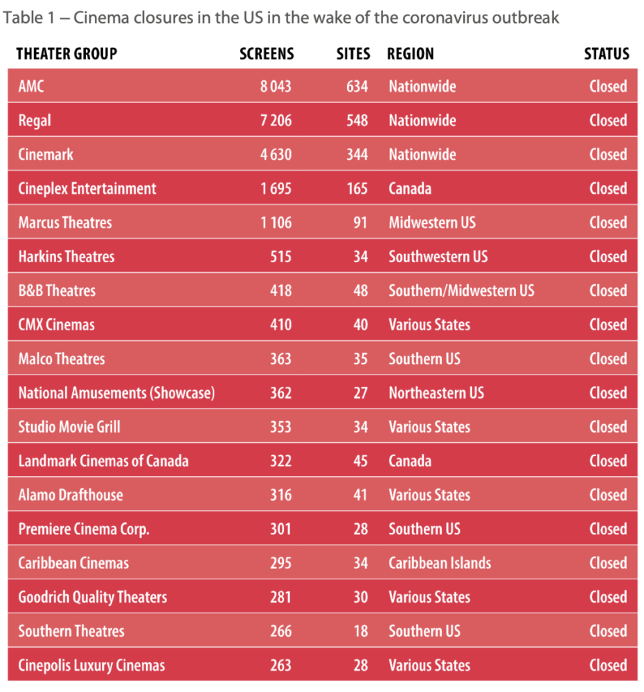 【美国影院剧院在疫情的反复冲击下显示出了“一片红”的关闭状态】