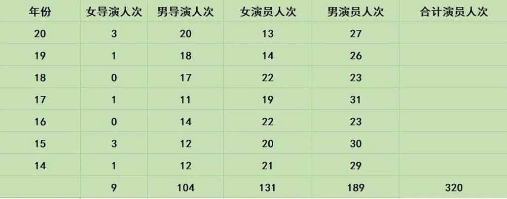 图源豆瓣网友“离离原”,据她统计女演员人次占比40.93%
