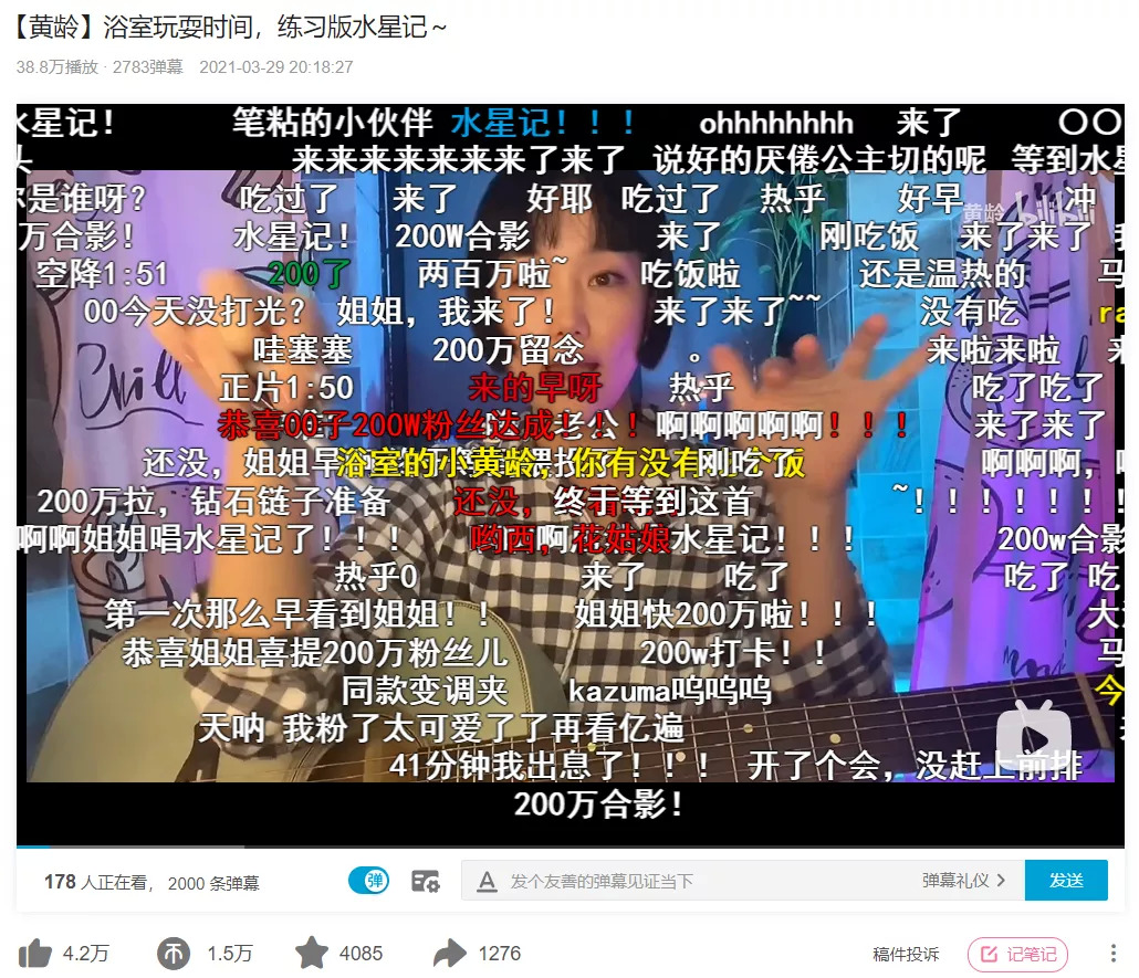 不仅电影长片如此,自媒体与明星营业视频大多是全网铺开,多个平台皆有推送,即便如此,B站造梗与捧人的能力也是独树一帜的,从硬核的半佛仙人到罗翔老师,再到“浴室歌姬”黄龄。尽管他们贡献的内容乍一看并不二次元,但由于契合了B站用户的审美取向(优质、有梗),也在B站获得了相当的排面。