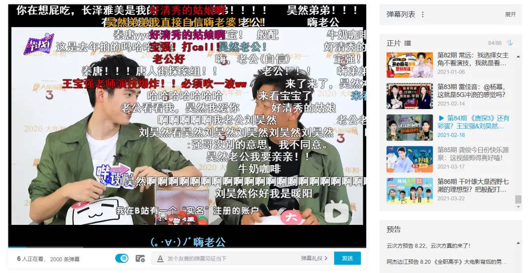 而在此期间,随着B站用户持续扩张,生活区、知识区等与现实联系更加紧密的新分区逐步充实起来,OGV所触及的品类也从二维走向了真人:高分纪录片、经典影视剧、跨年晚会、圈层综艺……到2020下半年,B站终于亮出锋芒,切入真人影视。