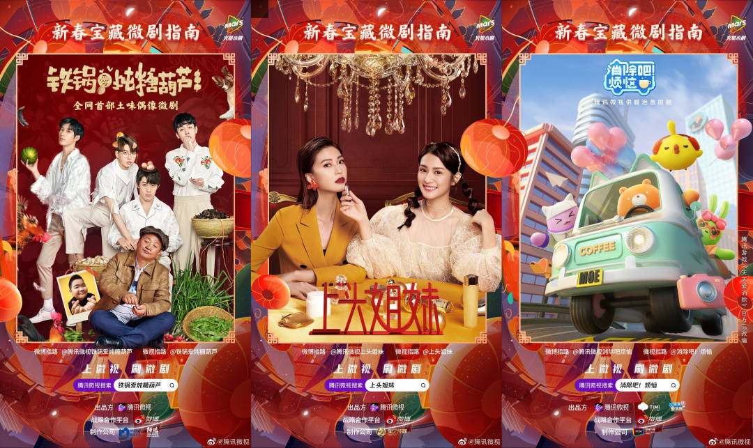 今年春节以来,腾讯微视一路高歌猛进,先后播出了《乡村爱情》原班人马出演的“土味”乡村偶像剧《铁锅爱炖糖葫芦》、全网首部主播养成微剧《上头姐妹》、改编自腾讯游戏天美工作室《天天爱消除》的微剧《消除吧!烦恼》等。