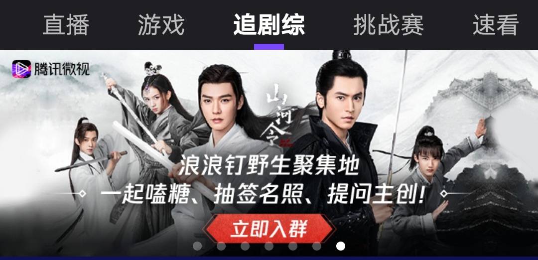 当前在优酷热播的《山河令》,一方面在微视可以查看到部分高光时刻,同时也开通追剧社区,通过QQ群作为浪浪钉野生聚集地,主张一起磕糖、抽签名照、提问主创等。