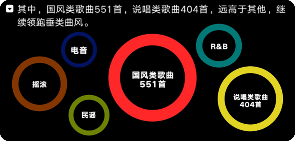 2020年单曲播放量排名最高的1万首华语新歌中,说唱以404首的数量,成为位列第二的垂类风格领跑者。(由你音乐榜最新发布的《2020华语数字音乐年度白皮书》)