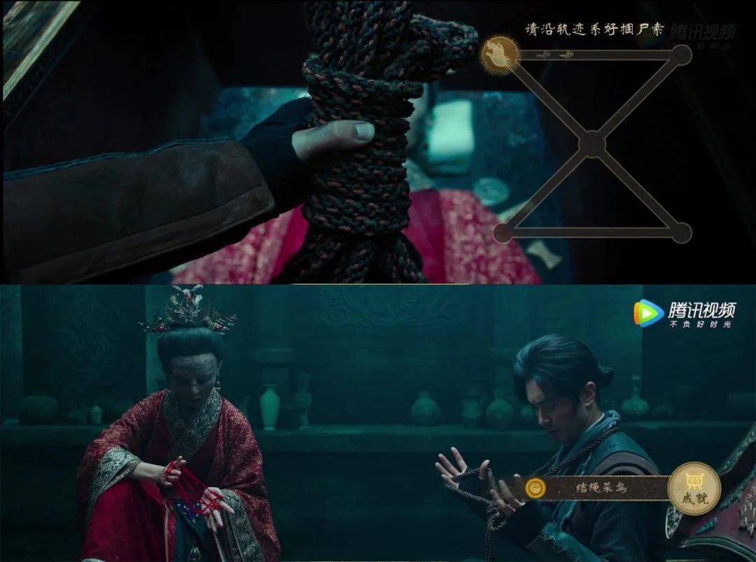 比如,《龙岭迷窟之最后的搬山道人》中有一段,说的是鹧鸪哨去墓里盗宝,需要观众按要求完成结绳任务。然而任务失败后,棺材里的僵尸会以喜剧方式提醒观众再次操作。这样一来,虽然互动的功能达到了,但冒险刺激感会有所降低。