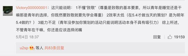 “尊重是致敬的基本要素,所以青年是睡觉还是干嘛那是青年的选择,你既然要致敬就要先学会尊重。”