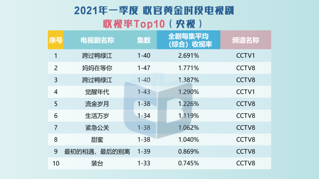 从作品题材来看,今年前四个月,剧集市场占据收视主导的,以献礼题材为主,如《跨过鸭绿江》以破2收视率登顶、《妈妈在等你》以1.77%的收视率登录亚军榜单,《山海情》则以1.504%的收视率次之。据统计,今年前4月收视榜单中,破1献礼剧作品数量为5部,占据总量近1/3。