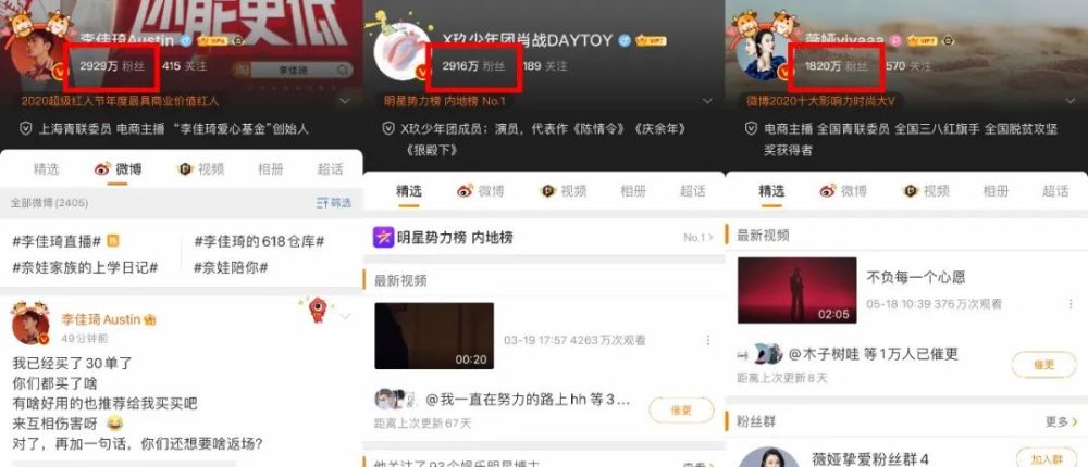截至目前,李佳琦微博粉丝2929万,肖战微博粉丝2916万,虽然差距只有13万,但足以证明李佳琦的人气,同为头部主播的薇娅微博粉丝只有1820万,两者粉丝相差超1000万。