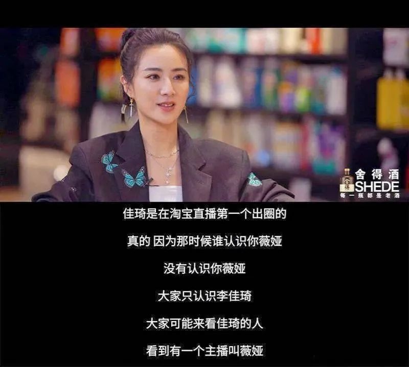按照“先富带后富”的定律,借助李佳琦的流量关注,薇娅也逐渐被更多人所熟知。在2020年的《舍得智慧人物》节目采访中,薇娅坦言非常感谢李佳琦,称“其实李佳琦是淘宝主播里最早出圈的,那时候人们只认识李佳琦……大家可能来看佳琦的时候,看到一个主播叫薇娅。”