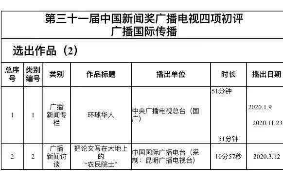 关于第三十一届中国新闻奖广播电视新闻访谈节目、新闻现场直播、新闻节目编排和新闻专栏初评结果的公告