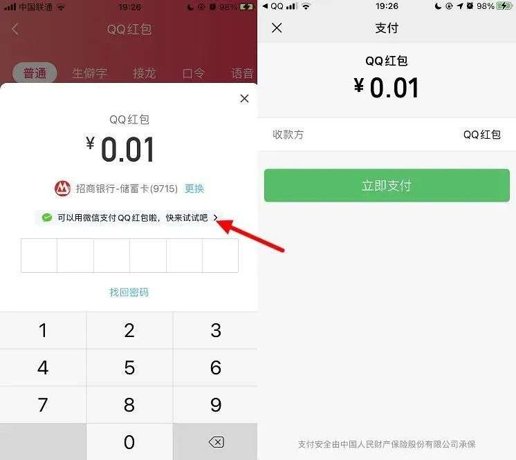 QQ发红包可以用微信支付
