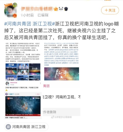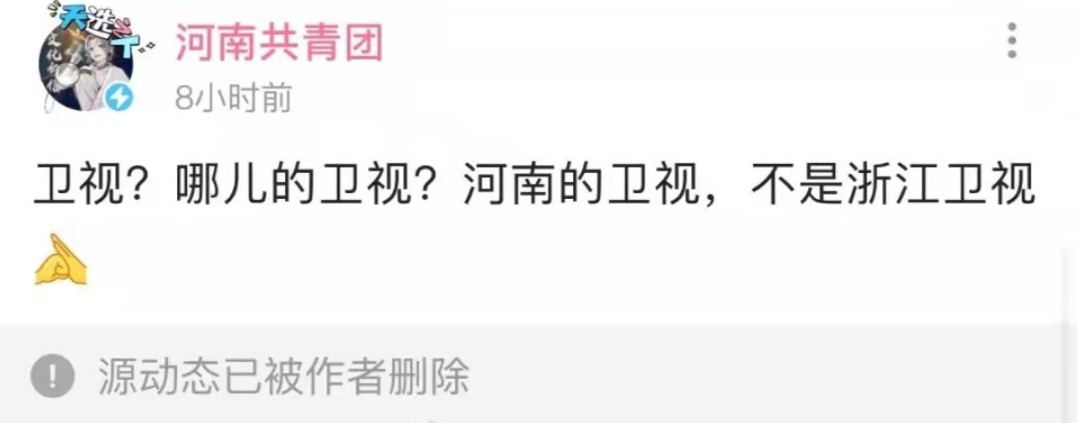 但近日,有网友发现“河南共青团”在自家的视频网站上转发了一段视频,视频是“端午奇妙夜”节目中《祈》的表演片段,却被打上了“中国蓝TV”(浙江卫视)的logo,“河南共青团”还配文写道:“卫视?哪儿的卫视?河南的卫视,不是浙江卫视。”