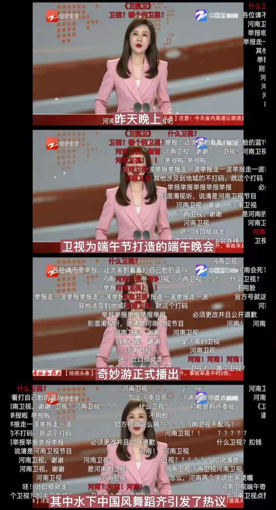 事件一出,引发网络热议。浙江卫视官方账号“中国蓝TV”遭到大量网友抵制,不少网友在视频底下留言“哪的卫视”“混淆视听,举报啦”“说清是河南卫视”。目前,该视频已经被官方账号删除。
