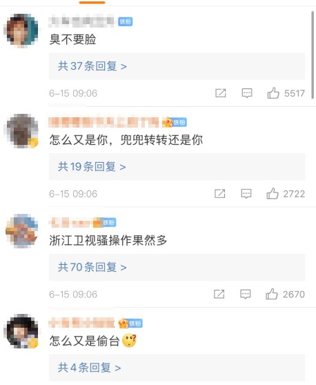 而面对浙江卫视这一而再再而三的过分行为,网友们毫不留情,纷纷发言抒发心中愤怒:“浙江卫视你要点脸吧”“怎么又是你,兜兜转转还是你”“有这心思不如好好学习学习怎么把节目做好”。