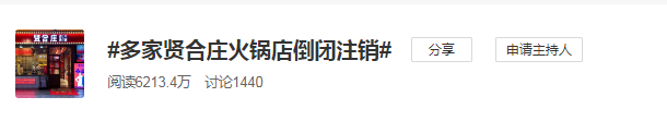 新京报爆出贤合庄倒闭传闻之后,接连收割了#多家贤合庄火锅店倒闭注销# #国内多家贤合庄倒闭注销##贤合庄声明##明星为何热衷于搞餐饮#等多个热搜。