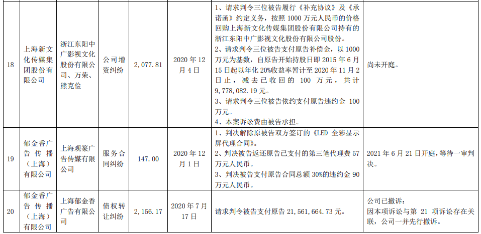 值得一提的是,除了与周星驰的纠纷,新文化还涉及20多起案件。
