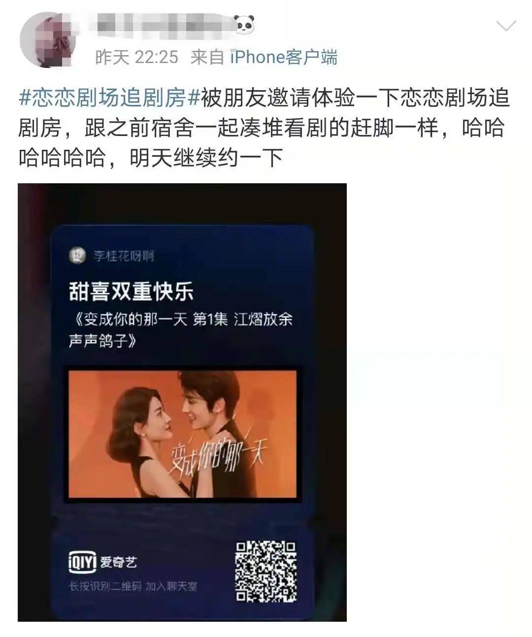 在小娱以剧粉身份参与到恋恋剧场《变成你的那一天》的追剧过程中,收到了一个来自其他剧粉的特殊邀请,那就是让我和她一起进入爱奇艺的追剧房一起看剧。