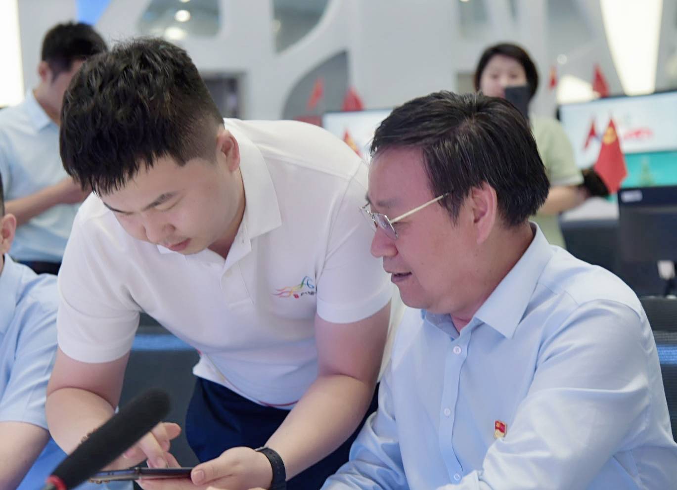 在内蒙古广播电视台“爱上内蒙古优选”网上商城启动仪式上,内蒙古自治区党委宣传部副部长、台党组书记、台长高文鸿同志扫码下单,完成“爱上内蒙古优选”网上商城的首单交易!