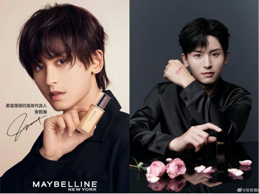 她抨击的小男生代言化妆品现象,正在自家艺人张哲瀚的身上发生。比如阿玛尼粉底、TF方管口红推广,以及倩碧水乳大使、美宝莲底妆代言、妮维雅防晒代言、伊丽莎白雅顿代言等等。