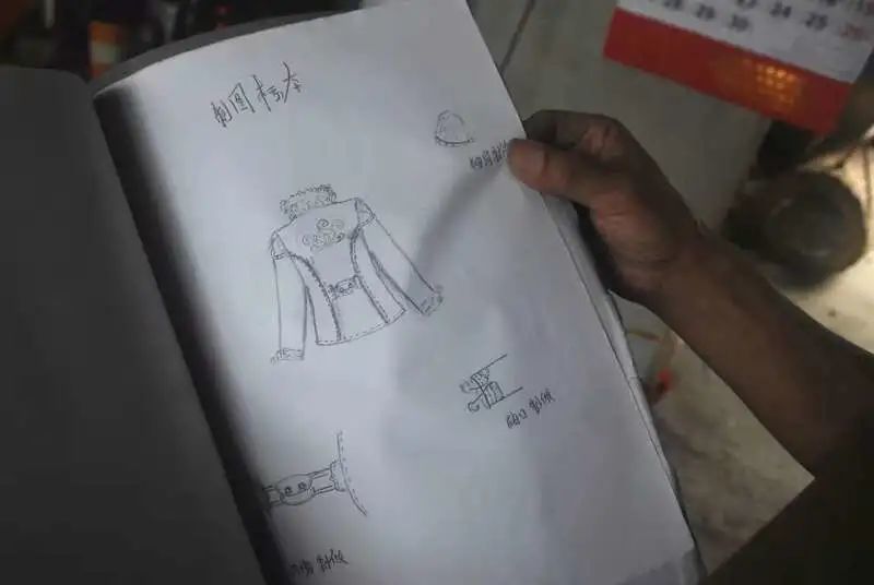 他称自己一直“想法很多”,在制衣厂打工时,他想过自己设计一套衣服,经常半夜爬起来,用粗铅笔在纸上画下歪歪扭扭的线条。他还想去上设计培训班,但家里妻子和儿女等着他寄钱养活。设计手稿塞满两本厚厚的文件夹,和歌曲书一起在衣柜的最上层吃灰。他翻到自己曾经设计的商标,“这是梦”,他指着商标笑。