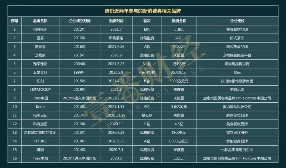 无论如何,从这些品牌来看,腾讯的新消费投资也都是偏于稳健,对于企业的成立时间、运营模式和盈利能力等方面的成熟性要求较高。