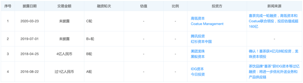 喜茶正式公开的融资历程