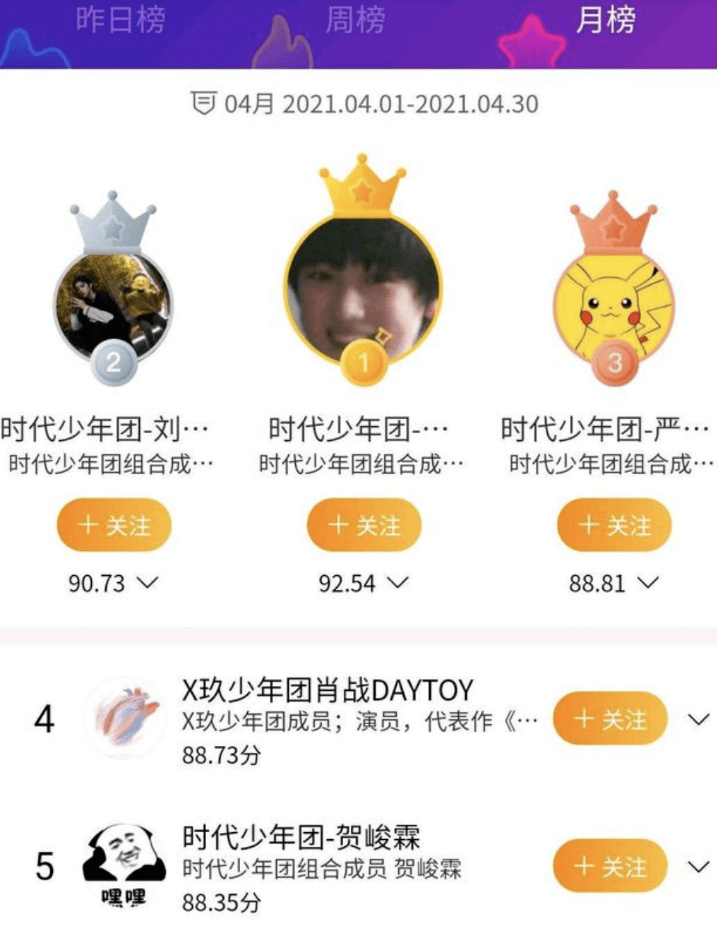 (明星势力榜截图。来源:网络)