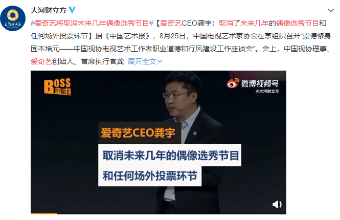文娱行业正面临大整顿,养成类偶像选秀综艺首当其冲受到影响。8月25日,爱奇艺创始人、首席执行官,中国视协理事龚宇在“中国视协电视艺术工作者职业道德和行风建设工作座谈会”上表态,“取消未来几年的偶像选秀节目和任何场外投票环节”。