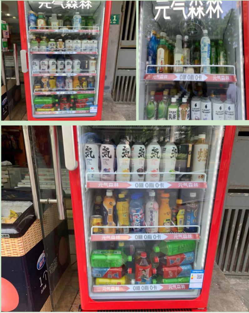“投放冰柜”,以保证自己在店内的C位,是今年夏天元气森林的另一项核心销售策略。毕竟,在夏天,所有人都想喝冰镇过的饮料——饮料是否能放在冰柜货架的显著位置,是影响最终销售额的关键临门一脚。而几家巨头都早早完成了自己的冰柜布局,例如农夫山泉大概投了50-60万台。