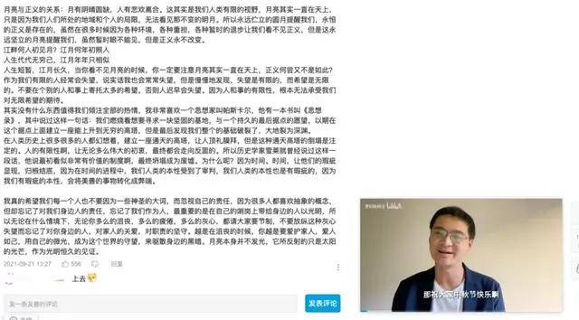 更为重要的是,罗翔的视频内容并不只是“授业”这么简单,还有哲学的思辨和悲天悯人的情怀。在罗翔视频的评论区,学术讨论的浓度远高于对段子的调侃,有人在评论区写道:“最初以为罗老师只是教法律、讲段子,后来才发现罗老师是在想方设法帮我在这个功利又浮躁的社会建立正确的价值观。”