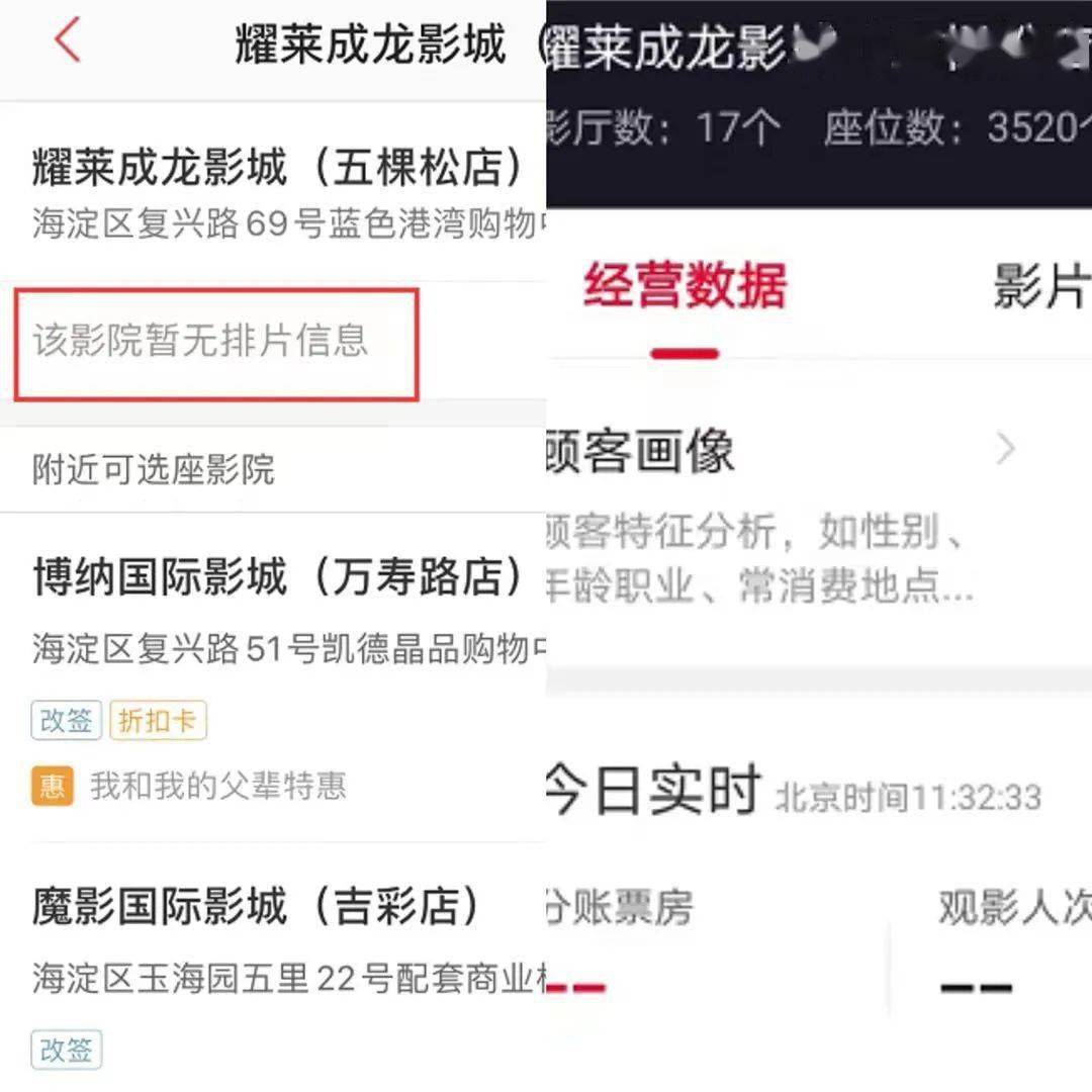 几个平台都没有耀莱成龙影城(五棵松店)售票信息 图片来源:售票平台截图