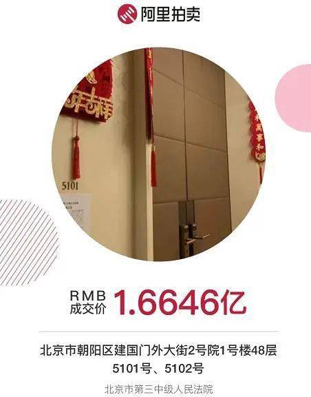 5月8日~9日,北京市第三中级人民法院通过阿里拍卖平台,公开挂拍了綦建虹位于北京市朝阳区建国门外大街2号院1号楼48层5101号、5102号的两套房产。