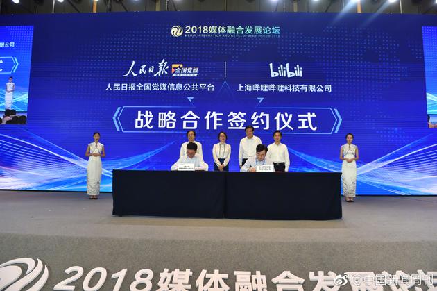 哔哩哔哩与人民日报全国党媒信息公共平台正式签署战略合作框架协议,双方将联合发起媒体融合公益基金。