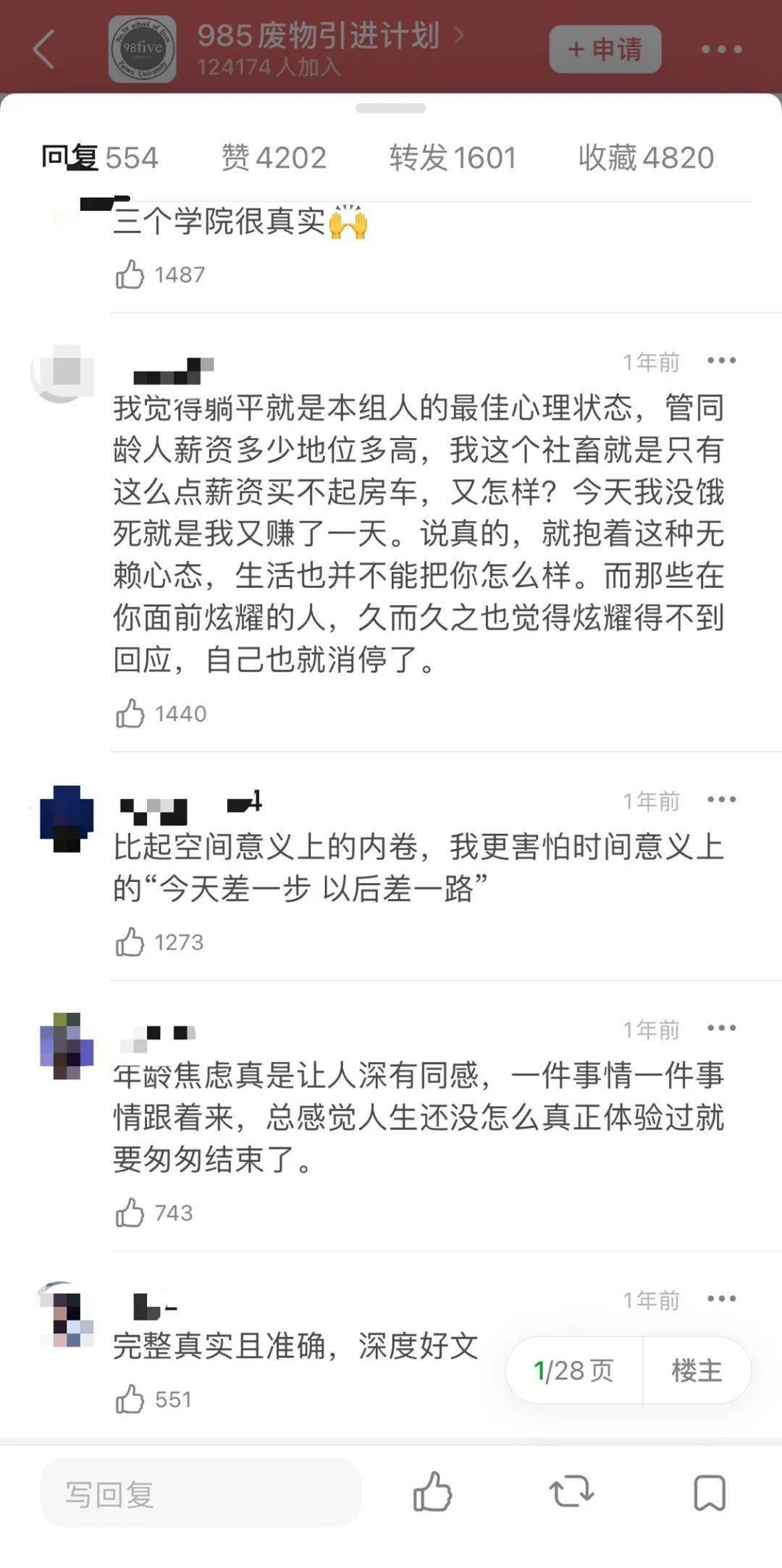 这12万985学子在小组里抱团取暖,他们一边拒绝内卷,一边在组里自救,寻求帮助,请这群素不相识,却又感同身受的陌生人给予自己人生规划上的建议。