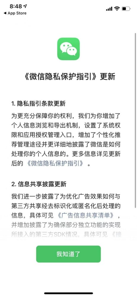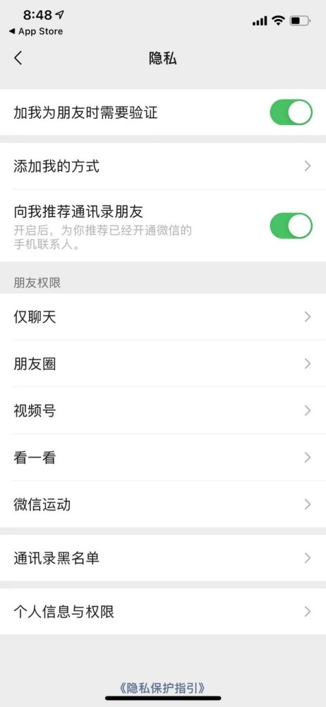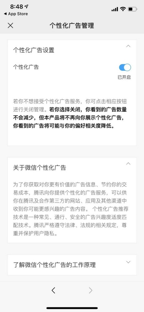 微信新版本可查看个人信息与权限 新增关闭个性化广告入口