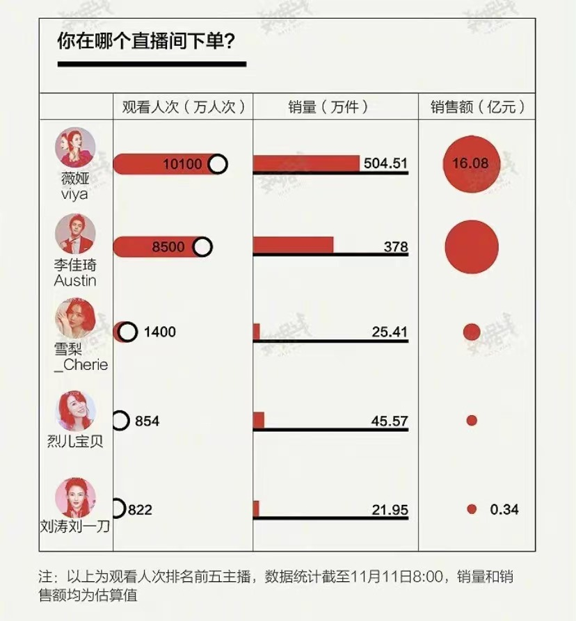 其二,从明星个体来讲,这仍然是一个有人在退出、有人在入局的过程,而市场等待的其实是头部明星主播的产生和洗牌。刘涛,是明星直播带货中不容忽视的存在,“刘一刀”的名号在江湖上打响,双十一期间她的直播间更是迎来了吴宣仪、李承铉等明星。