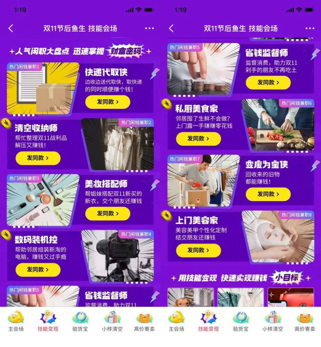 不过,没有闲置物,也急需回血怎么办?技能变现了解一下。