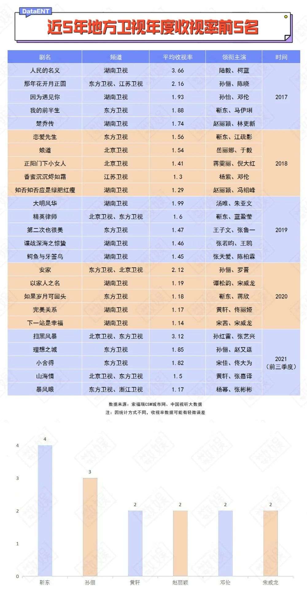 在坊间,一直有“男靳东女孙俪”的说法,从数据来看果然名不虚传。两位演员分别在各自的领域一骑绝尘,属于绝对的“扛剧王者”。