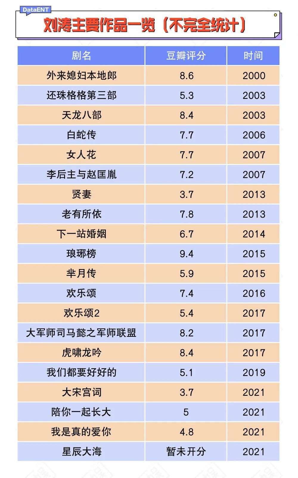 2003年,《天龙八部》中温婉可人的阿朱让刘涛在陈好、刘亦菲、蒋欣等一众美女中脱颖而出,成为了一代人的白月光;2006年,她再次凭借《白蛇传》中的白素贞成功出圈,巩固了自己在观众心目中贤妻良母的印象;复出之后,她甚至出演过一部名叫《贤妻》的电视剧,并以1.56%的首播收视率将这部在豆瓣只有3.7分的作品推上了同时段全国第一。