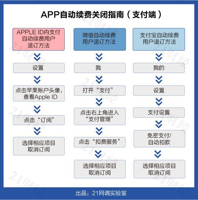 21网调实验室在测评中发现,取消APP自动续费主要有两种途径:在客户端/网页端取消或在支付端取消。