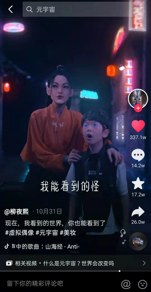 “她(柳夜熙)更像是我们元宇宙世界里的一个开场角色。像漫威、迪士尼那样,我们希望能打造一个带有自己特色的IP世界,做短视频赛道的迪士尼。”梁子康说。