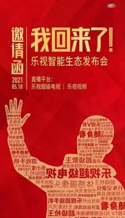 今年5月,乐视智能生态发布会邀请函海报,出现了贾跃亭的剪影。