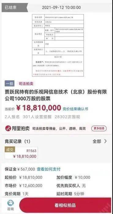 9月12日上午,贾跃民、贾跃亭兄弟所持1.41亿股乐视网股权的网上拍卖结束。共有4410万股成功拍出,相应价格为8295.21万元人民币,其余9659万股均宣告流拍。