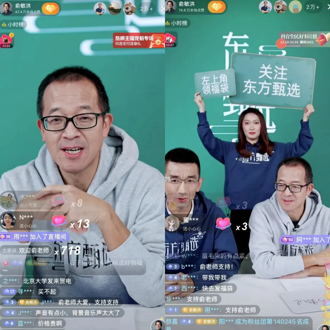 一旦两人能够联手卖货,对俞敏洪来说,将直接提升直播间流量和热度。