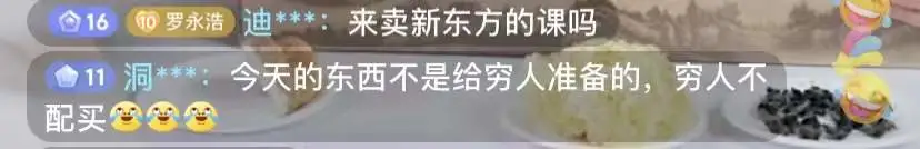 面对只有500万元的交易额,俞敏洪解释为“还是农产品卖的太便宜”。但在网友一侧,“买不起”、“太贵了”、“吃不起”的评论充斥了整场直播。