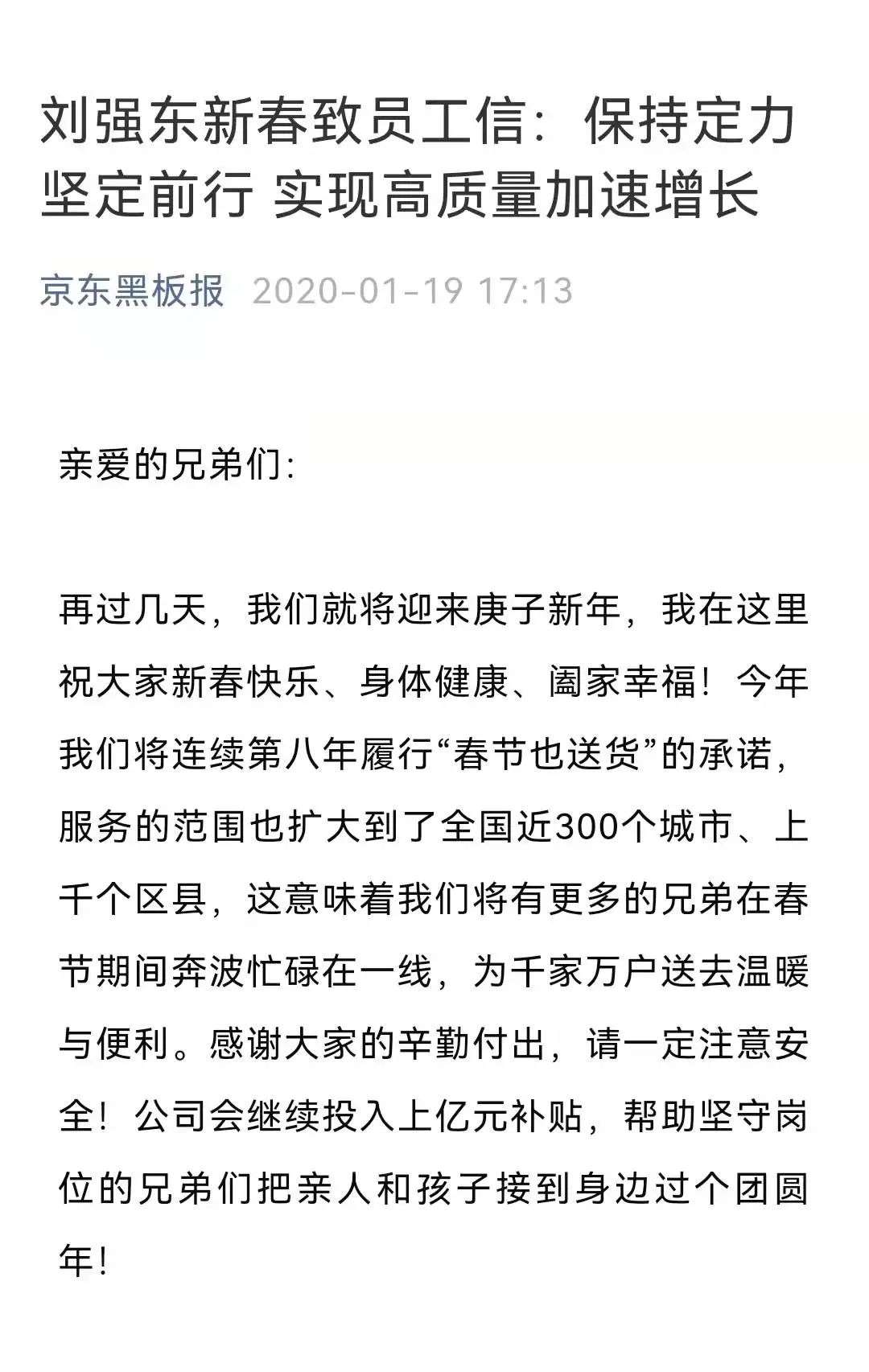 (刘强东2020年新春致员工信)